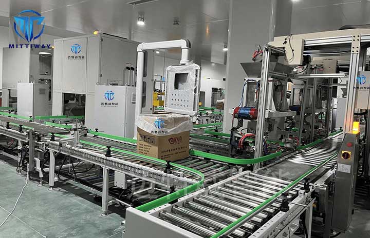 迈特威智能自主研发纸箱套袋机、桶套袋机、周转筐套袋机、家电套袋机、酒盒套袋机等,以及化工行业后端套袋包装解决方案。