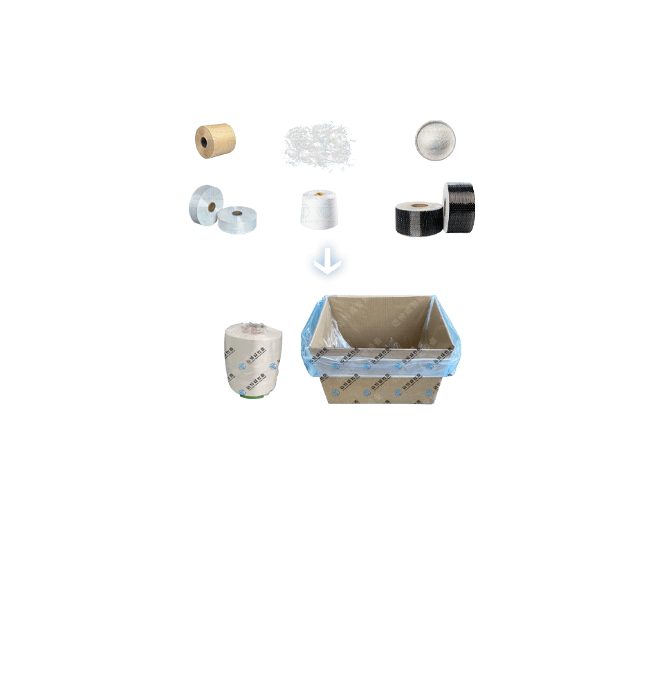 迈特威智能设备为纱锭、丝线、化学纤维、电容纸、成品膜等材料产品,设计研发了一套纱锭外套袋+下吸膜封口设备,并同时提供箱套袋封口设备服务,助力材料产品的后道包装整线自动化。