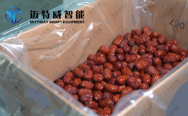 迈特威红枣后道包装解决方案提供从开箱-套袋-灌装-提袋封口-封箱-码垛等一站式服务,通过高效自动化产品:纸箱自动开箱、纸箱内套袋、提袋封口、自动码垛等,起到降本增效的作用。