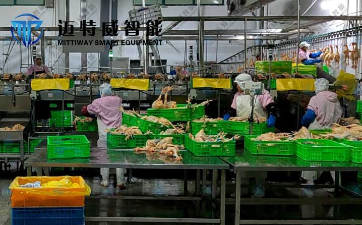 迈特威鸡肉后道包装解决方案是集成了自动化、智能化技术的鸡肉包装生产线,采用智能化的包装设备:智能套袋机、自动封口机等,根据鸡肉的包装参数和规格,自动完成包装材料的供应、封装、封口等操作。