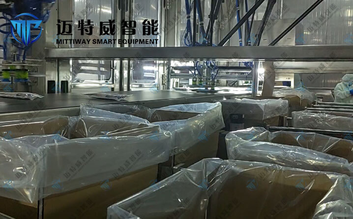 迈特威虾滑后道包装解决方案是一个集自动化、智能化、精准化于一体的整线解决方案,提供从开箱-套袋-灌装-提袋封口-封箱-码垛等一站式服务。虾滑后道包装解决方案利用先进的自动化包装设备和智能化技术,实现虾滑成品包装的全程智能化控制和管理。