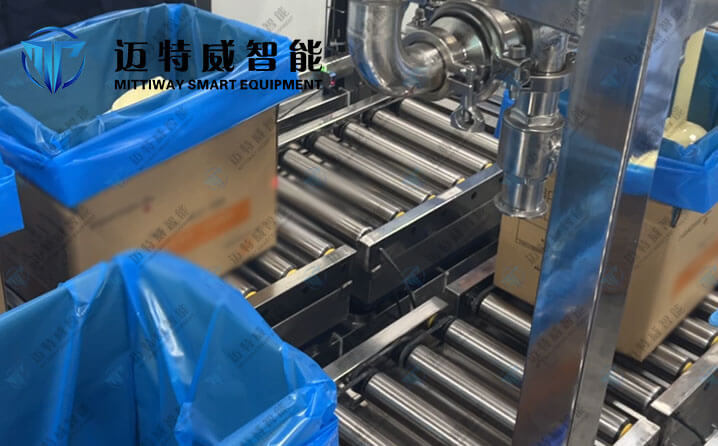 奶油后道包装解决方案是迈特威智能通过引入先进的自动化技术和智能设备,实现从开箱-套袋-灌装-称重--提袋封口-封箱-码垛等一站式服务。