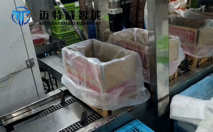 星球杯后道包装解决方案是迈特威智能设备(广东)有限公司集成自动化、机器人和物联网技术的智能包装解决方案,实现从开箱-套袋-灌装-称重-金属检测-提袋封口-封箱-码垛等一站式服务。